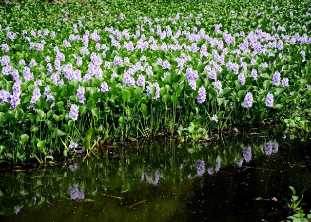鳳眼藍在生長適宜區(qū),常由于過度繁殖,阻塞水道,影響交通,被列入世界百大外來入侵種之一。由于缺乏有效的管控,鳳眼蓮的大量生長,會限制水體的流動,使水體沒有陽光照射,變得發(fā)臭,導致水體中的溶氧量減少,抑制浮游生物的生長,破壞河涌生態(tài)環(huán)境。同時鳳眼藍的腐爛階段會大量地消耗水體中的溶解氧,水下動物比如魚類活動繁殖空間將會減少,甚至會導致魚類大量死亡。