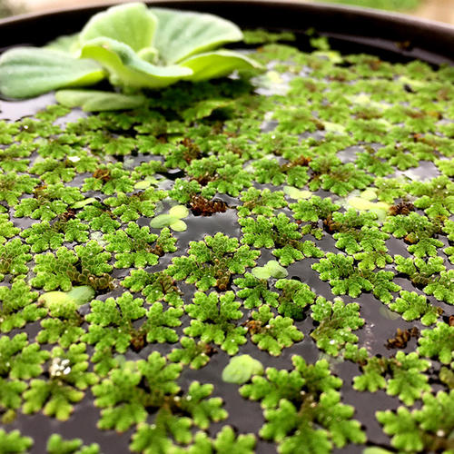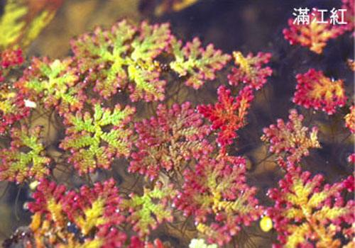 滿江紅又稱紅萍或綠萍 ,屬蕨類植物。滿江紅原是一種綠肥作物,常見于稻田或水池中,因其與固氮藻類共生,故能固定空氣中的游離氮,是稻谷的優(yōu)良生物肥源;因其具有較高的營養(yǎng)成分,故可作為畜禽飼草利用,是畜禽的優(yōu)良飼草來源。滿江紅呈卵形或三角狀,根狀莖細長橫走,一般為綠色,在秋后常變?yōu)樽霞t色,邊緣無色透明,常和魚腥藻共生,生長溫輻寬、繁殖速度快、產(chǎn)量高、適應能力強,漂浮于水面,常見于稻田、內(nèi)湖、池塘、水庫。滿江紅生長對溫度條件要求高,過高過低均不宜生長。當氣溫低于5°C或高于40時,生長停止,8~12開始生長,15~20生長較快,20~25時生長最快,35以上生長緩慢。滿江紅隨著品種的不同對水溫和水深的要求也不同。滿江紅可在pH值3.5~10的水體中生長,但最適pH值為6.5~7.5。