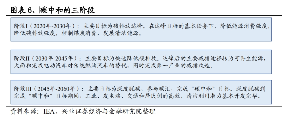 據(jù)此,結(jié)合我國(guó)的承諾的時(shí)間節(jié)點(diǎn):1)從現(xiàn)在至 2030 年,我國(guó)的碳排放仍將處于一個(gè)爬坡期;2)2030-2060 年這 20 年間,碳排放要渡過平臺(tái)期并最終完成減排任務(wù)。