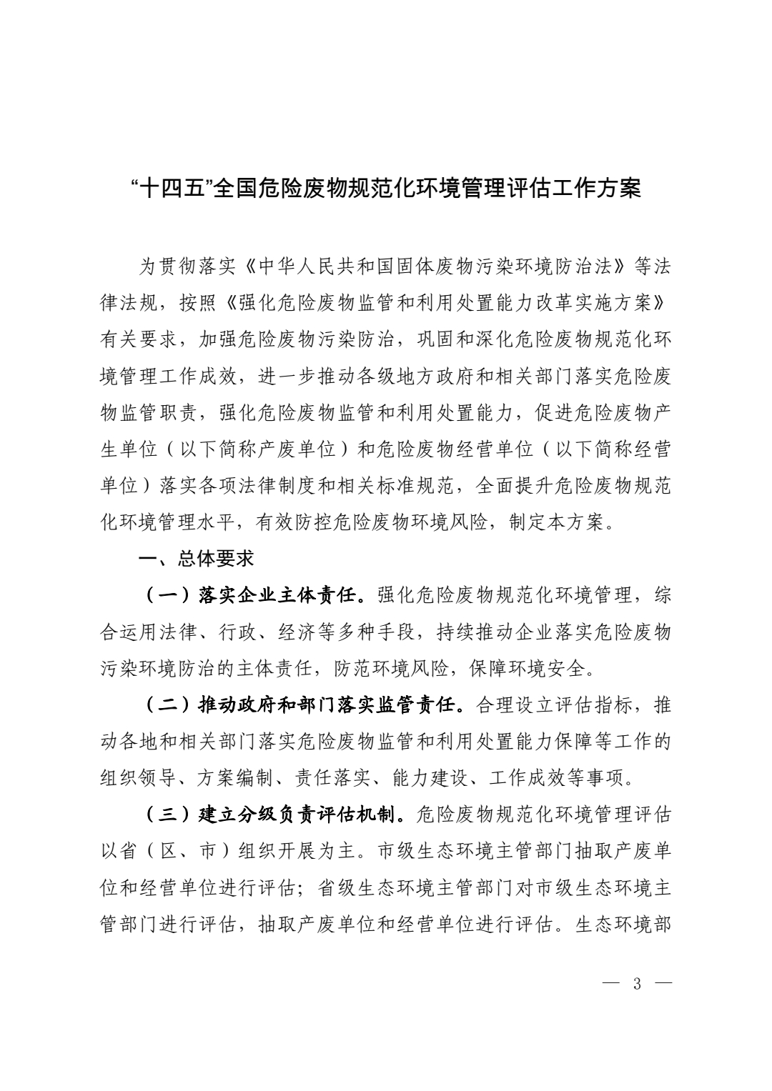關(guān)于印發(fā)《“十四五”全國危險廢物規(guī)范化環(huán)境管理評估工作方案》的通知