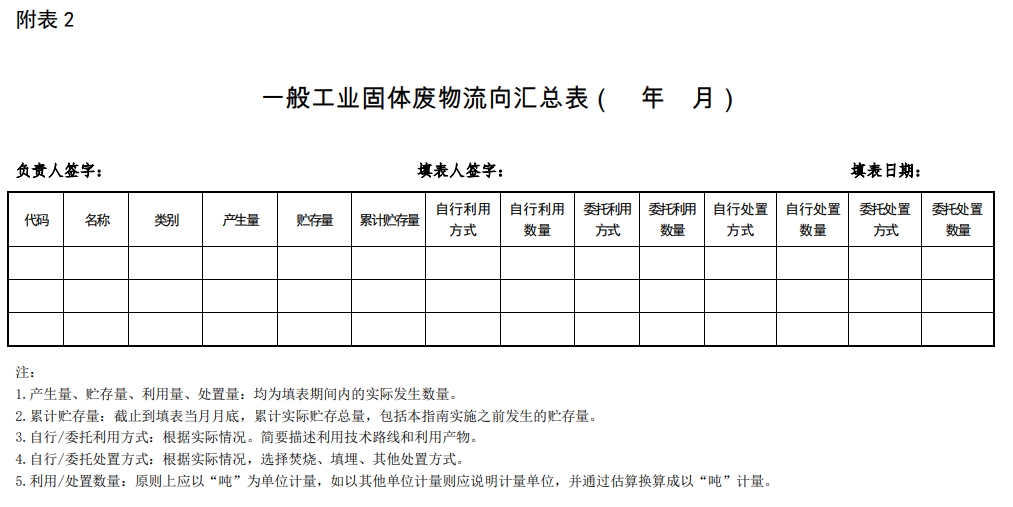 2.一般工業(yè)固體廢物流向匯總表( 年 月)
