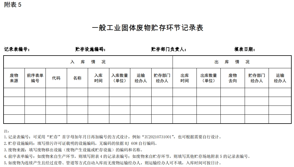 5.一般工業(yè)固體廢物貯存環(huán)節(jié)記錄表