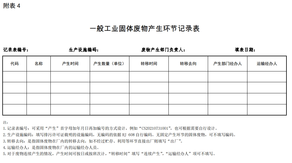 4.一般工業(yè)固體廢物產(chǎn)生環(huán)節(jié)記錄表