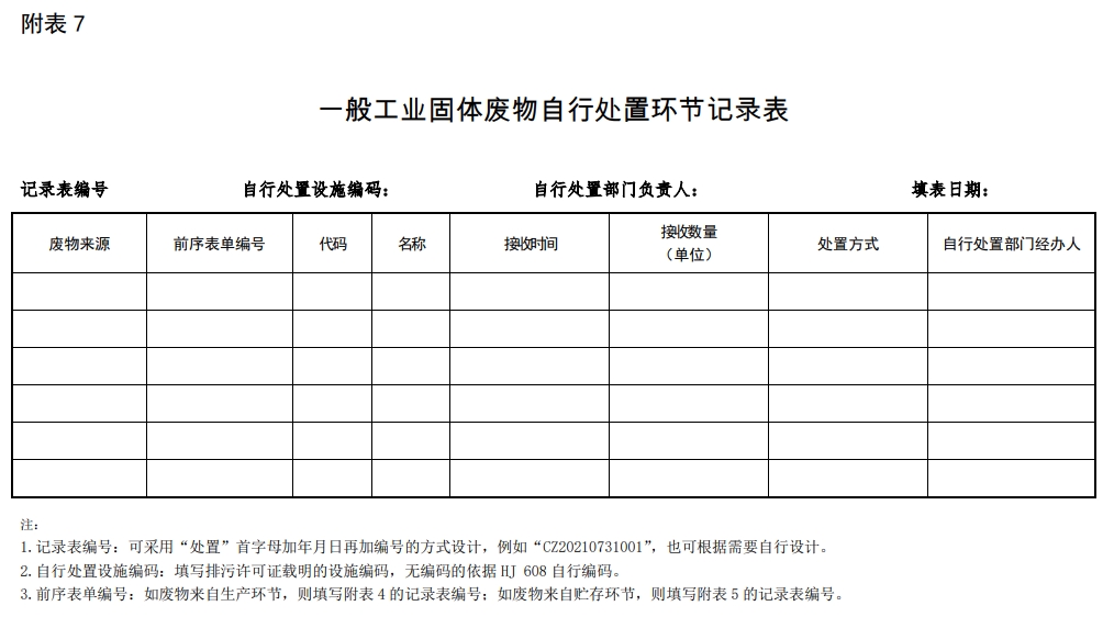 7.一般工業(yè)固體廢物自行處置環(huán)節(jié)記錄表