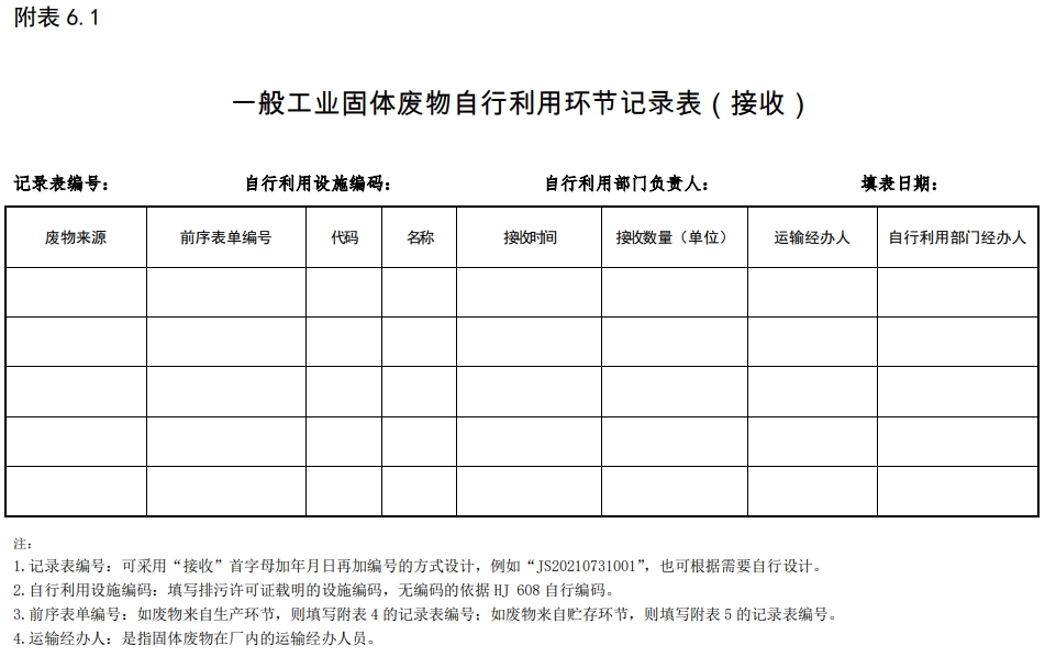 6.1一般工業(yè)固體廢物自行利用環(huán)節(jié)記錄表(接收)