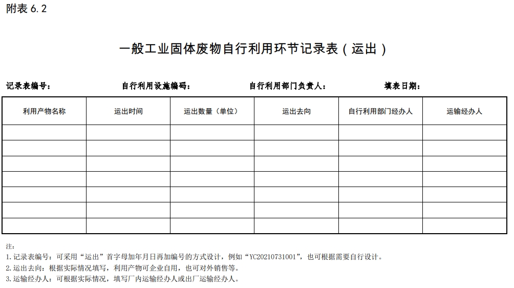 6.2一般工業(yè)固體廢物自行利用環(huán)節(jié)記錄表(運出)