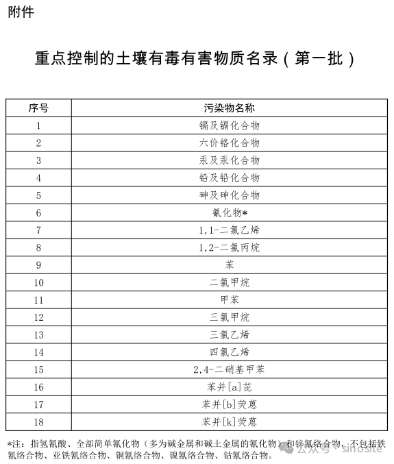 重點控制的土壤有毒有害物質(zhì)名錄(第一批)