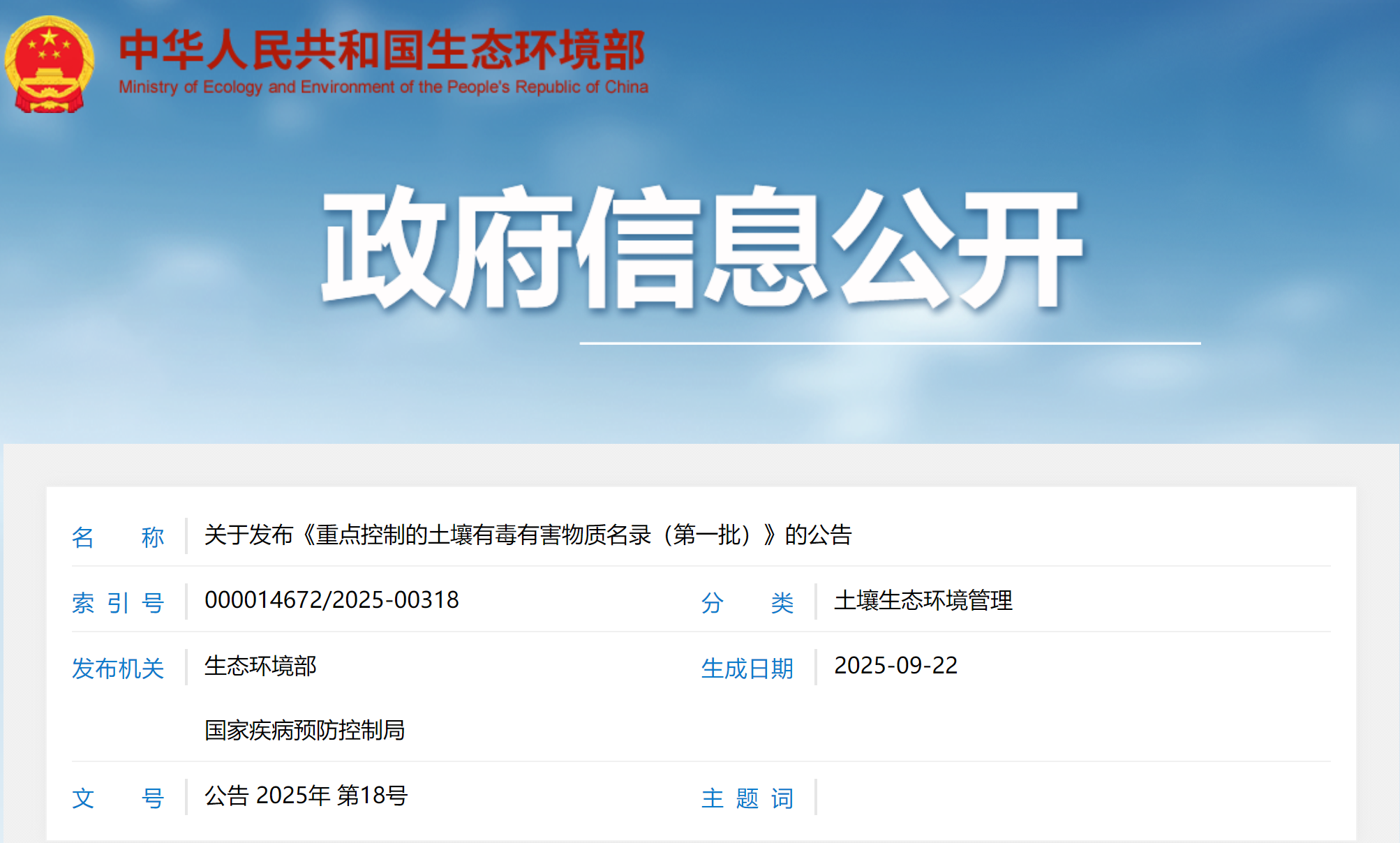 近日,生態(tài)環(huán)境部與國家疾控局聯(lián)合發(fā)布《重點控制的土壤有毒有害物質(zhì)名錄(第一批)》(以下簡稱《名錄》)。